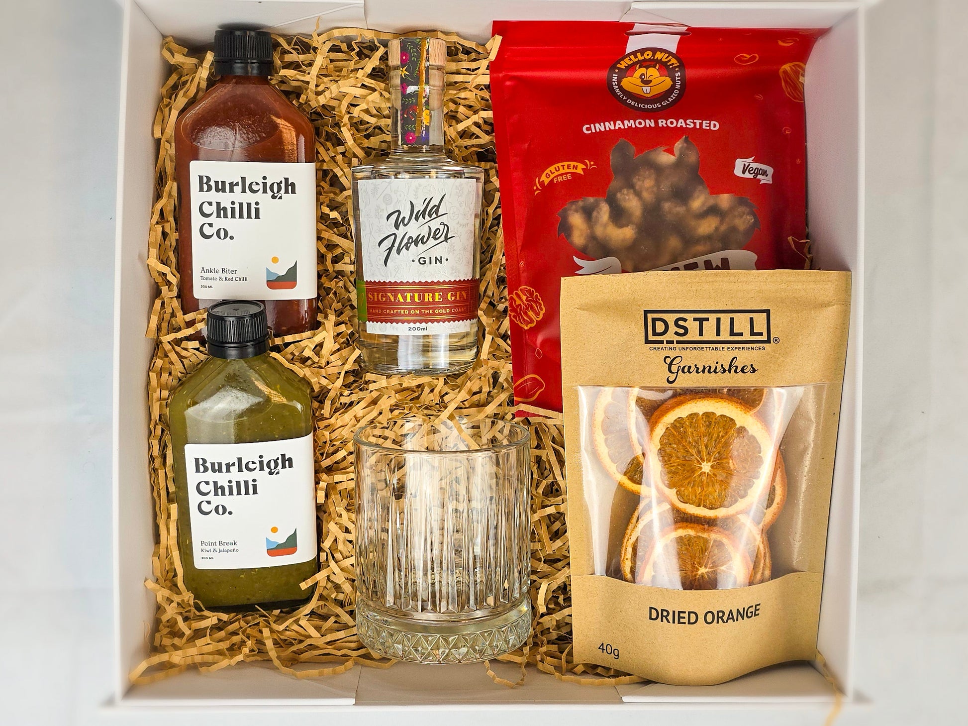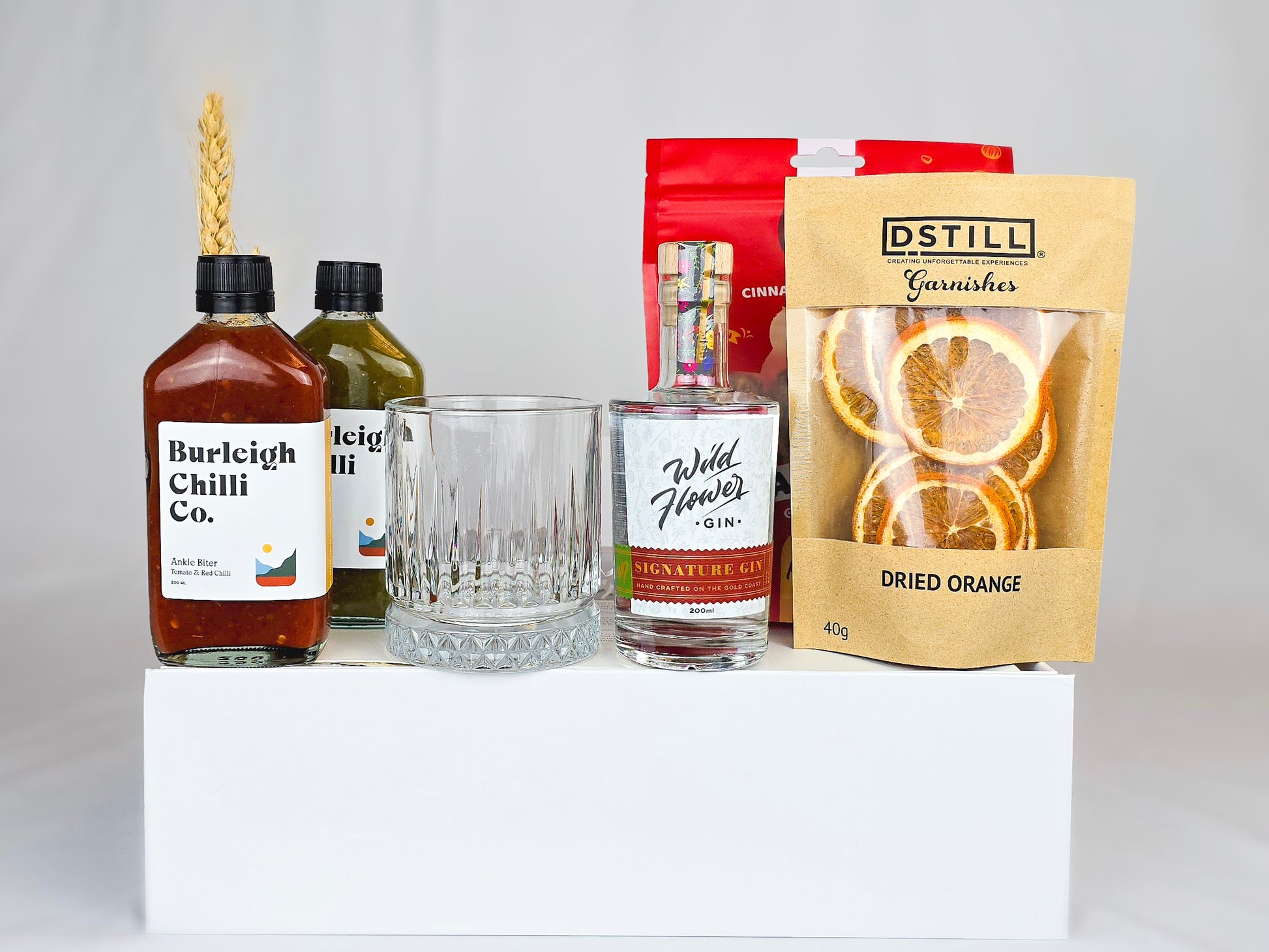 - Wildflower Signature Gin 200ml- A gold award-winning gin distilled in small batches on the Gold Coast, this London Dry style gin balances juniper, citrus, spice, and gentle hints of local honey for a refined drinking experience.